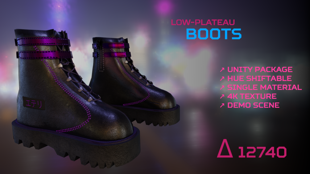 A pair of cool easily customizable boots perfect for use in VRChat. They are rigged and come with an armature. Should fit the Pandaa base nicely but also any other humanoid base.